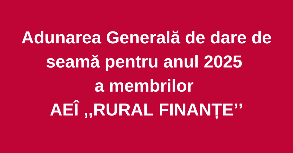 La data de 8 Martie 2026, ora 11:30,în localul Casa de Cultură Mihăileni,va avea loc Adunarea Generală de dare de seamă pentru anul 2025 a membrilor AEI RURAL FINANȚE.