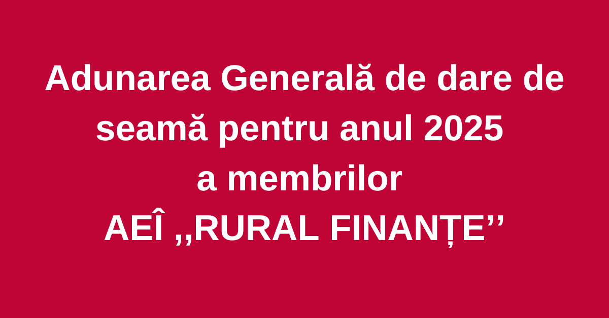 La data de 8 Martie 2026, ora 11:30,în localul Casa de Cultură Mihăileni,va avea loc Adunarea Generală de dare de seamă pentru anul 2025 a membrilor AEI RURAL FINANȚE.